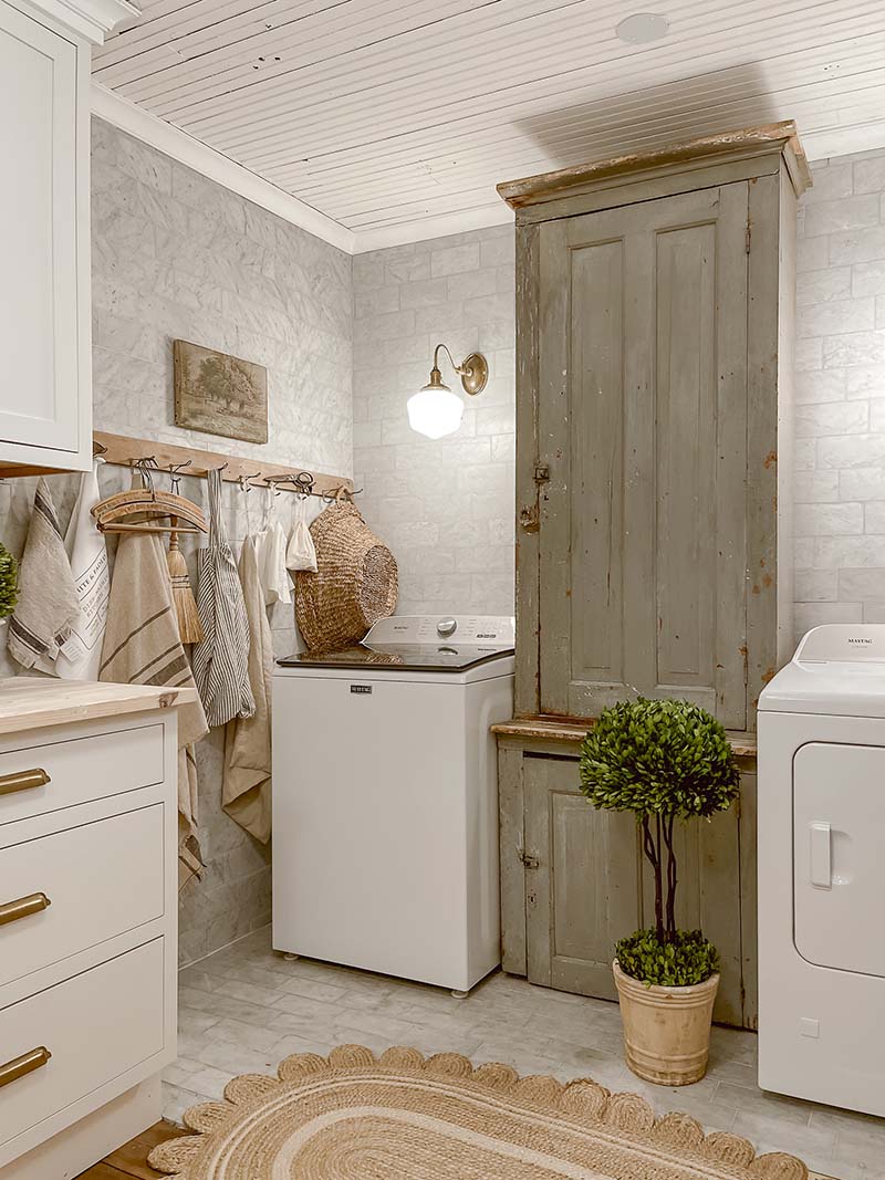 Come on over and check out Liz Marie’s Laundry Refresh… also check out her entire space for inspiration and ideas! I Love the the Antique Cabinet added in an amazing color… plus the greenery… the decorative hanging rack and so much more! My favorite are the dogs lol!!!! This space almost makes laundry seem fun!